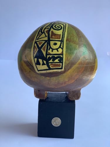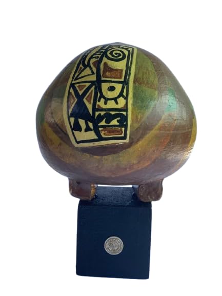 Generic - Barati Art Handcrafted Large pottery Ethnic Tribal Pottery Sculpture | Abstract Graphic African-Inspired Mounted on a Wooden Cube Base | Unique Modern Home Decor Accent