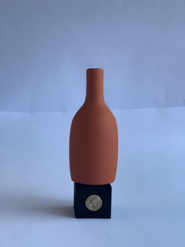 Generic - فازة من الفخار الطيني غير اللامع المصنوع يدويا بتصميم ريفي بسيط وديكور منزلي عصري بقاعدة خشبية طبيعية بنمط فن باراتي