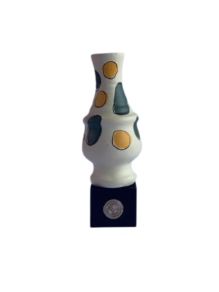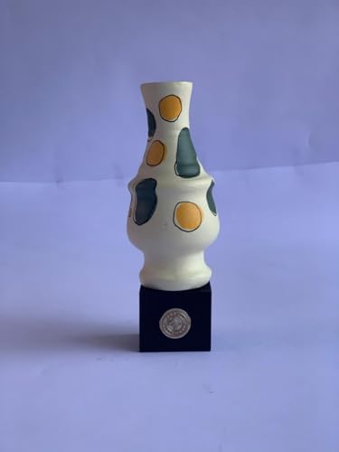 - Barati Art Signature Style: Authentic, handcrafted pottery sculpture with a curved form and a unique, abstract spotted or organic patch pattern.