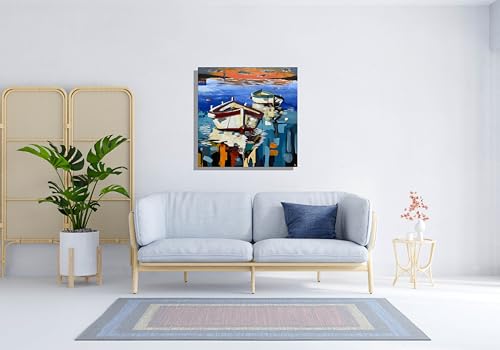 Generic - لوحة فنية من باراتي ارت هاربور هارموني - 100 × 100 سم من الاكريليك على القماش - لوحة فنية جدارية تجريدية بحرية حديثة - ديكور منزلي عصري مصنوع يدويًا