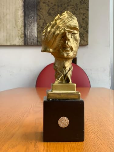 Generic - Barati Art Large Abstract Mini Sculpture "The Despair Handcrafted Metallic Gold Finish Desktop Statue on Black Base