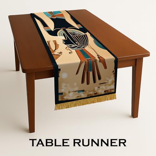 Generic - Barati Art | PHARAONIC Mystic Hand & Solar Motif Table Runner – Ancient God Art Design – Premium Tasseled Fabric for Cultural Décor – 180 x 32 cm