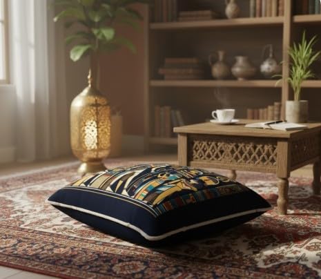 Generic - Barati Art Pharaonic Pouf Cover 80x80 cm –Suede Fabric on Rubber Egyptian Geometric Ottoman Case – Bohemian Floor Cushion – Accent Home Décor for Living Room