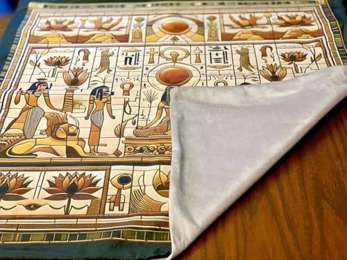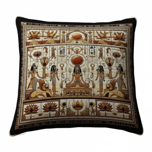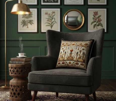 - دع غرفة المعيشة الخاصة بك تحكي قصة. يتميز هذا الغطاء بتفاصيل الآلهة والأسود والرموز الهيروغليفية الأصلية.
