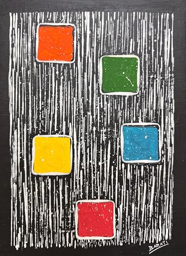 Generic - Barati ART Radiance in the Dark 01, 40x30 cm Acrylic Hand Painting on Canvas, Modern Abstract Wall Art, Vibrant Primary Color Blocks, Textured Black Background, Original Fine Art for Home or Office