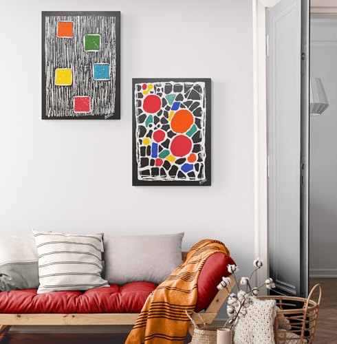 - STRIKING MODERN DESIGN: Features vibrant primary colour blocks arranged in an abstract composition against a richly textured black background, creating dramatic visual contrast perfect for contemporary spaces