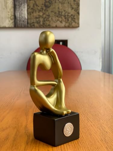Generic - تمثال صغير تجريدي صغير من باراتي ارت "المفكر | تمثال سطح المكتب بلمسة نهائية ذهبية معدنية بسيطة على قاعدة سوداء