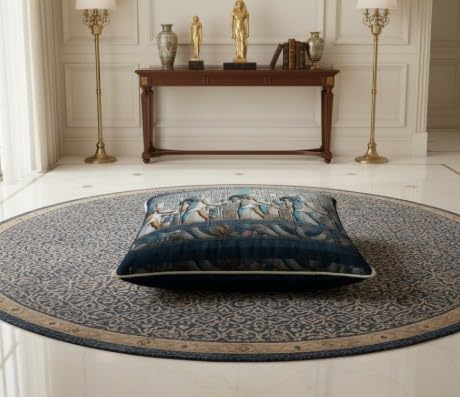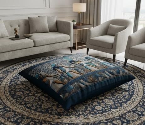 Generic - Barati Art suede Pharaonic Pouf Cover (80x80 cm) – Premium Egyptian-Inspired Decorative Floor Cushion Case – Luxury Bohemian Ottoman for Living Room & Bedroom Décor Cover only – no filling included
