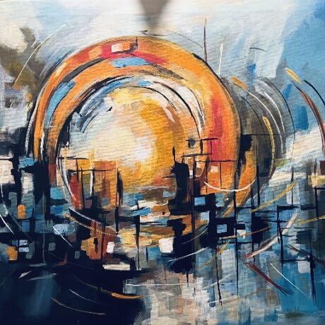 - نمط فني: تصميم تجريدي حديث يتميز بأنماط مستوحاة من السماوية ومجموعات ألوان نابضة بالحياة