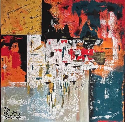 Generic - لوحة فنية يدوية من الاكريليك على قماش من باراتي - "Color Clash" عمل فني تجريدي مقاس 75 × 75 سم - لوحة فنية جدارية يدوية نابضة بالحياة لديكور المنزل والمكتب