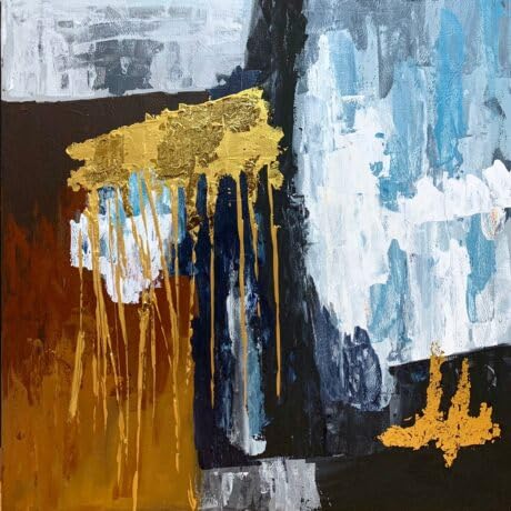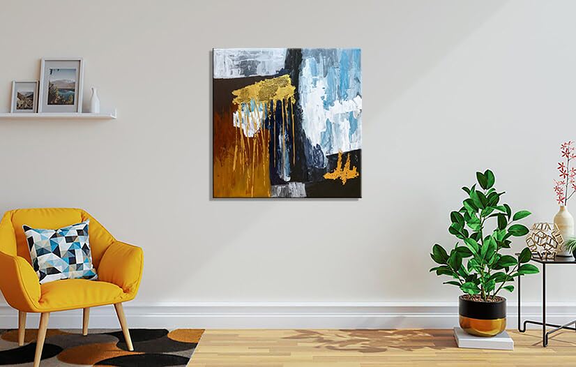 Generic - لوحة فنية جدارية تجريدية ذهبية من باراتي ارت، 70 × 70 سم، لوحة يدوية اكريليك على الجلد، ديكور عصري فاخر للمنزل والمكتب