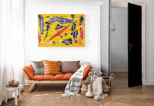 Generic - لوحة يدوية تجريدية من الاكريليك مقاس 100 × 70 سم من باراتي مومنت اوف امباكت | لوحة فنية تعبيرية ديناميكية | ديكور اصفر واحمر عالي التباين