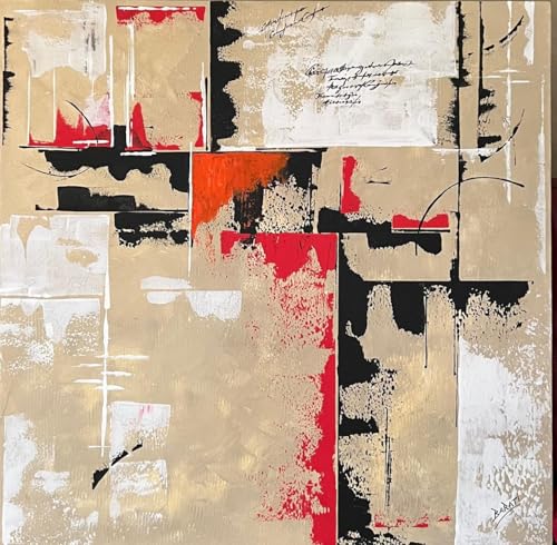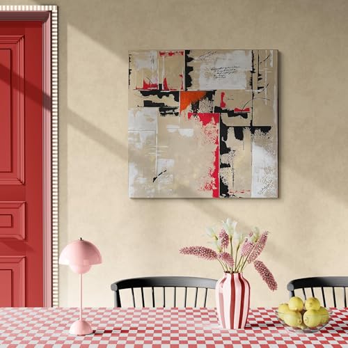 Generic - Barati SCRIPTED CHAOS 75x75cm Abstract Acrylic Hand Painting | Structured Beige, Black & Red Contrast Art | Modern Office Decor