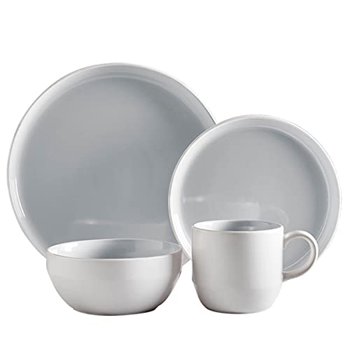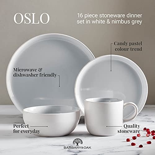 Barbary & Oak - Barbary & Oak Tower BO867004GRY Oslo 16 Piece Dinnerware Set, Stoneware, White and Nimbus Grey
