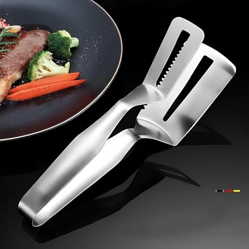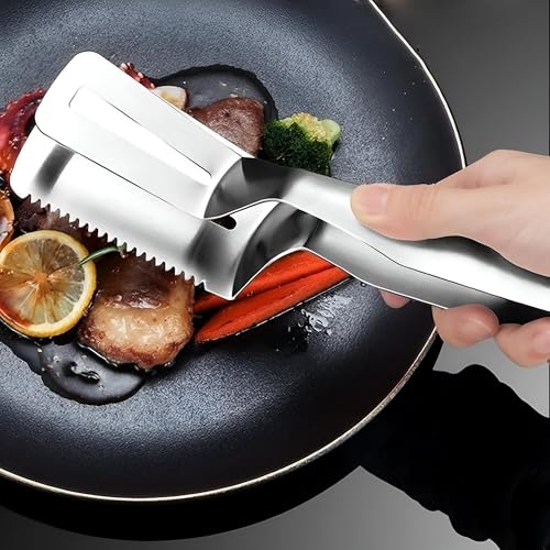 - Introducing the Stainless Steel Food Fried Fish Steak Clip Tong, perfect for all your BBQ grilling needs. Crafted from high-quality stainless steel, these tongs ensure durability and reliability for years of use. Measuring 25*4.3cm, they offer a comfortable grip and design, making it easy to handle various foods like steak, bread, meat, and grilled fish. With a thoughtful hanging loop for easy storage or a locking ring for secure drawer placement, these multifunctional tongs make organization a