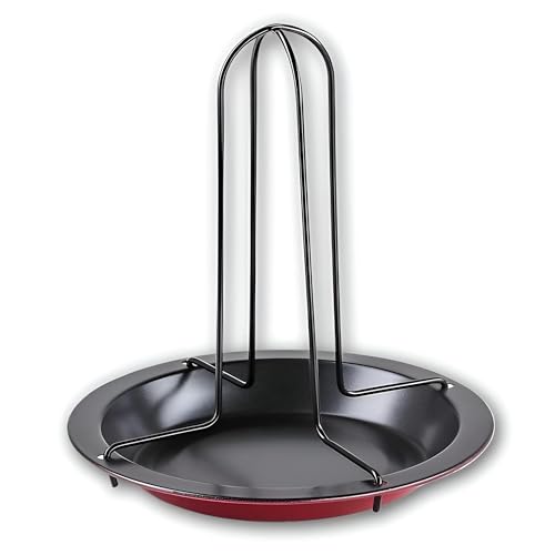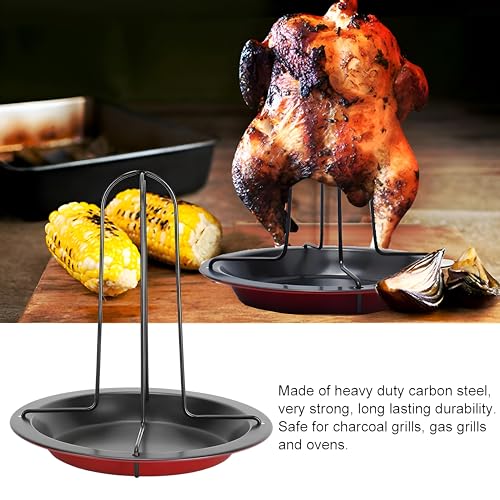 Generic - Barbecue Holder - Premium carbon steel stand with integrated tray for juicy poultry roasting and easy cleaning, ideal for kitchen, oven cooking, and backyard grilling, elegant black and red design