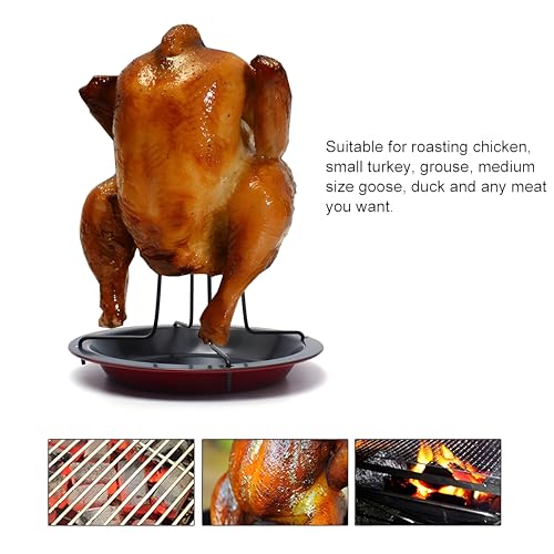 - Designed for versatility, this roasting holder works perfectly with charcoal grills, gas grills, or ovens. It accommodates chickens, small turkeys, ducks, and other birds, offering a wide range of culinary uses without complicated setup.