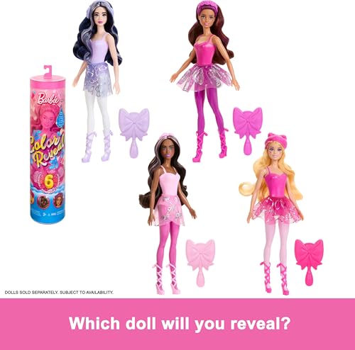 - مع 6 مفاجآت في عبوة واحدة، تقدم دمى باربي Color Reveal متعة مستوحاة من الرقص -- سيستمتع الأطفال بالكشف عن سلسلة راقصة الباليه هذه مع ابتكار الكشف عن الألوان الأصلية!