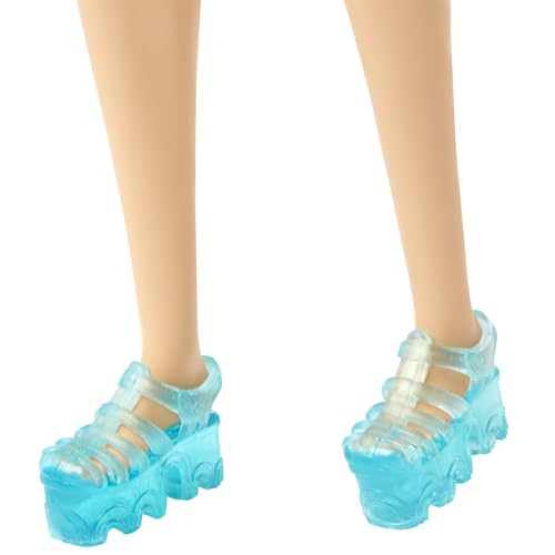 - Barbie is dressed for sightseeing in a trendy summer dress and comfortable sandals