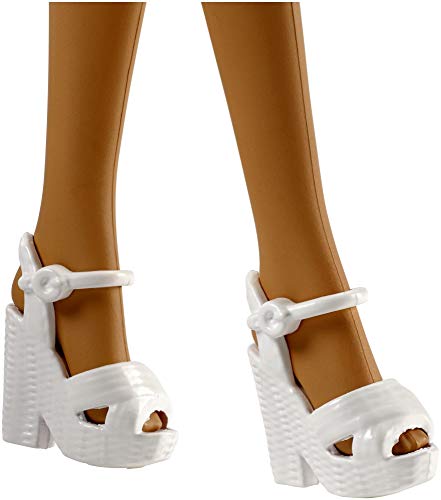Barbie - باربي - دمية مع بودي سوت مخطط ملون وتنورة دينيم والعديد من ازواج الاحذية وحقائب اليد واكسسوارات الموضة لعبة للاطفال سن 3 سنوات فما فوق FVJ42