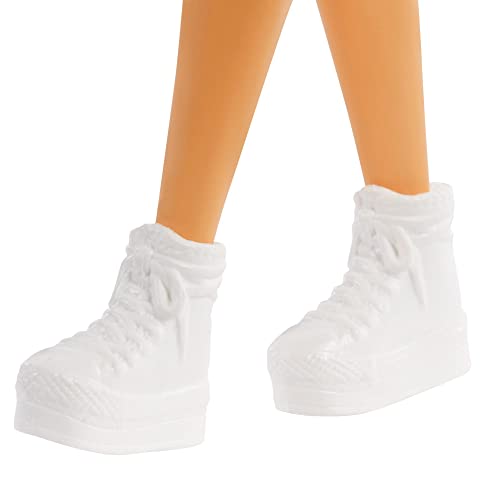 Barbie - Barbie Fashionistas Doll, Petite, with Light Brown Hair Wearing Tie-Dye T-Shirt Dress, White Shoes & Visor, Toy for Kids 3 to 8 Years Old