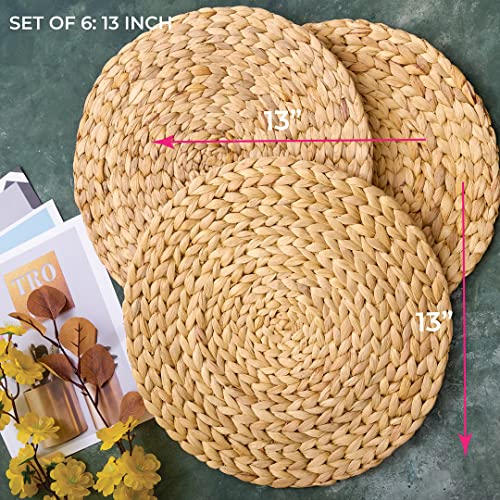 BARIEN - مجموعة مفارش دائرية منسوجة مقاس 33 سم مكونة من 6 قطع، مفارش منسوجة من الياقوتية المائية الطبيعية لطاولة الطعام، مفارش كبيرة منسوجة يدويا ومقاومة للحرارة وغير قابلة للانزلاق
