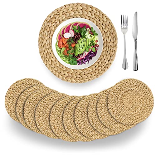 BARIEN - باريين (4 مقاسات: 30، 33، 38 سم) مفارش دائرية من نسيج محبوك من الخزامي الطبيعي مقاوم للحرارة والماء والانزلاق لطاولة الطعام، مجموعة من 14 قطع مقاس 33 سم