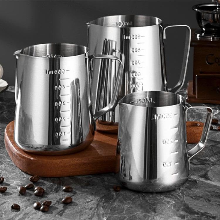 Generic - أداة باريستا وصب قهوة من الفولاذ المقاوم للصدأ بمقياس ومقبض مريح، تصميم منحني جميل مناسب للكافيهات والبارات وإعدادات خدمة الطعام (350 و550 و900 ملليلتر)