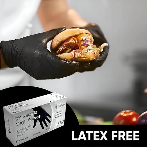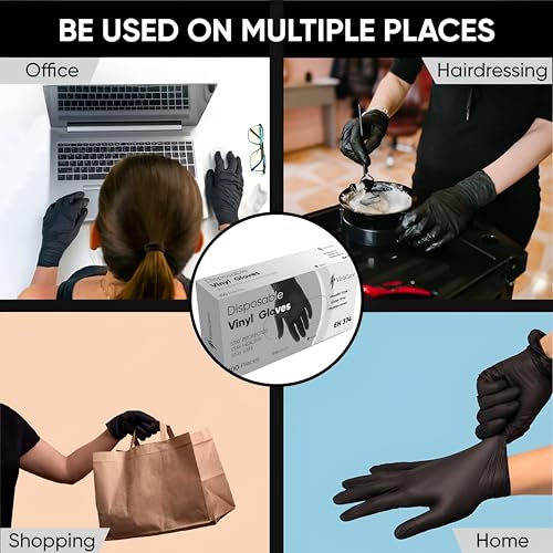 Generic - Barrier - Black large vinyl gloves, disposable, non-latex and powderless, 100 pack, strong yet comfortable, designed for multiuse applications like cleaning, care, kitchen work and safe handling