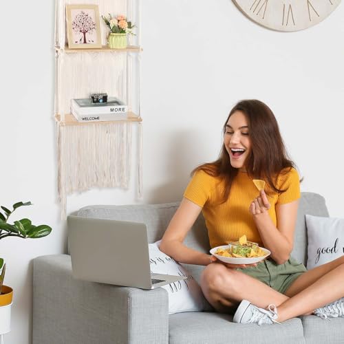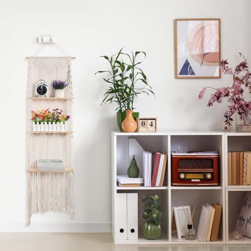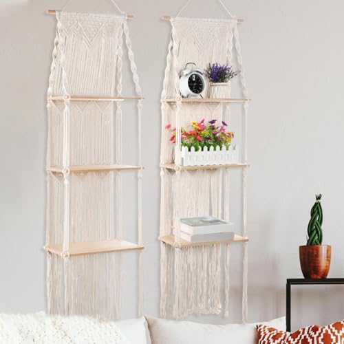 - Package Content: the package includes 2 sets of macrame wall hanging shelf; These are designed to cater to your apartment or house's decor and storage needs; You'll have enough shelves to decorate multiple rooms, or reserve one for future needs; They are easy to install and rearrange according to your preference