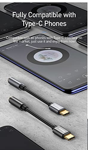 Baseus - كابل محول USB-C الى جاك صوت 3.5 ملم من باسيوس لاجهزة سامسونج جالاكسي نوت 10 بلس / نوت 20 الترا / S21 / S22 الترا - 9 سم - اسود