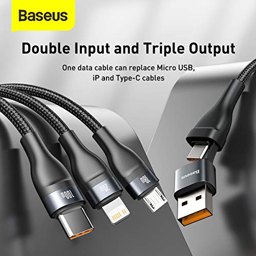 Baseus - Baseus Flash Series Two-for-three Data Cable U+C to M+L+C 100W 1.2m Gray+Black