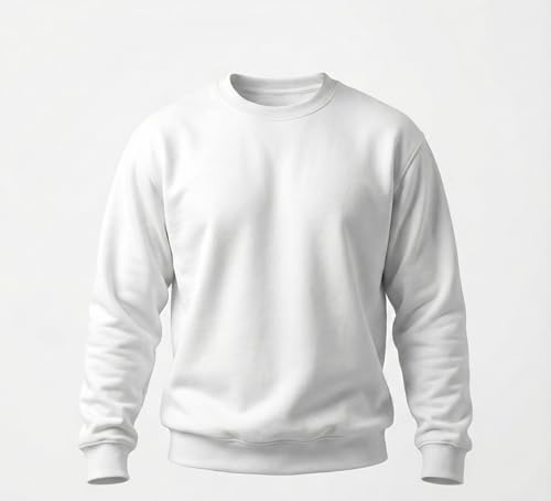 سويت شيرت بيسيك ابيض سادة للرجال - قطن - كاجوال