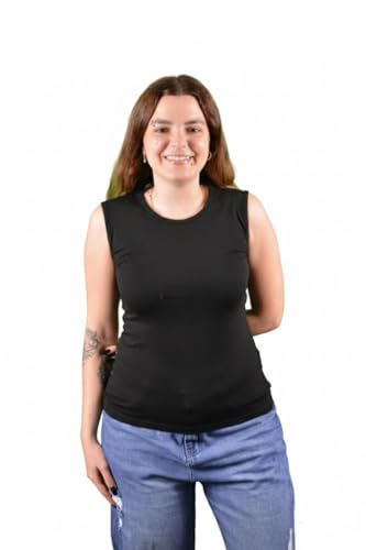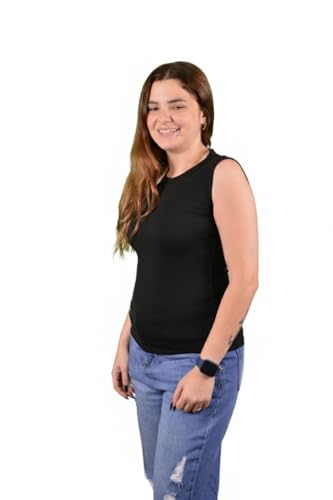 Basic Wear Club - بلوزة ليكرا قطنية بدون اكمام للنساء من بيسيك وير كلوب، رقبة عالية، قصة ضيقة، نمط عناق الجسم، 95% قطن 5% مزيج ليكرا
