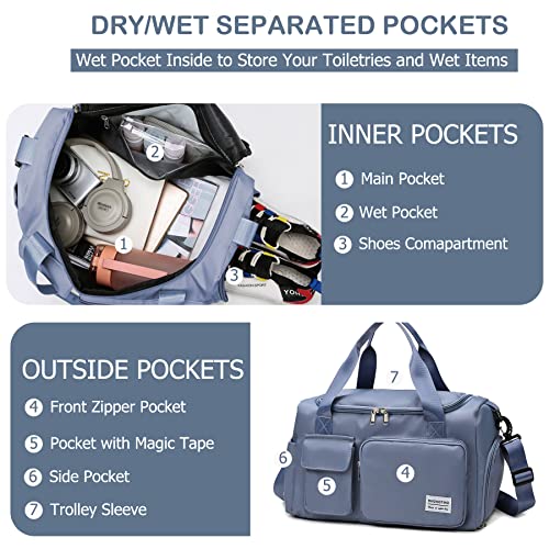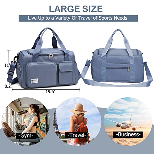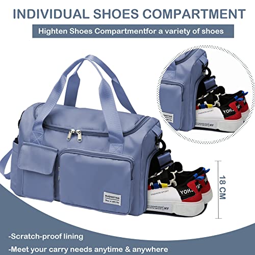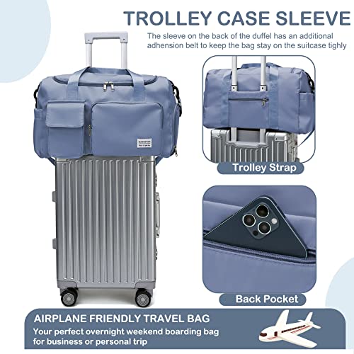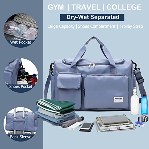 BASICPOWER - BASICPOWER Travel Duffel Gym Tote Sports Bag, Carry on Waterproof Lightweight Weekender Overnight Bag with Shoe Compartment, Luggage Sleeve & Wet Pocket, for Women and Men, Blue