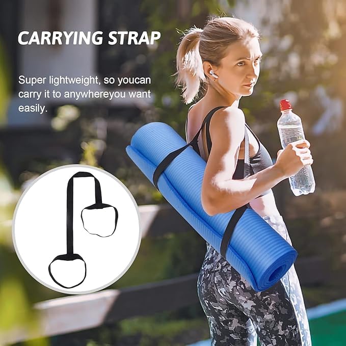 Generic - سجادة ارضية سميكة للغاية لتمارين اليوجا وصالة الالعاب الرياضية مع حزام حمل من بيسيكس - 74 × 24 × .5 انش، ازرق
