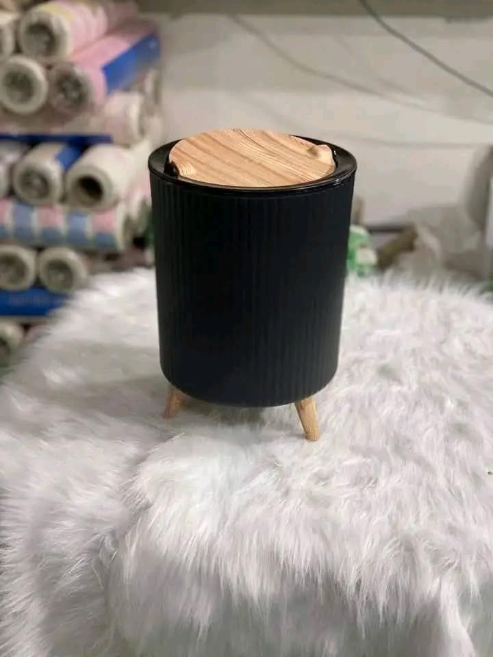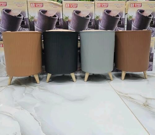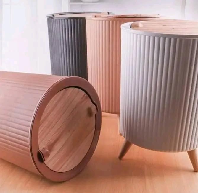 Generic - Basket Decoration Modern Trash Can with Wooden Legs, Ribbed Design, Wooden Lid, Multicolor, Home Decor