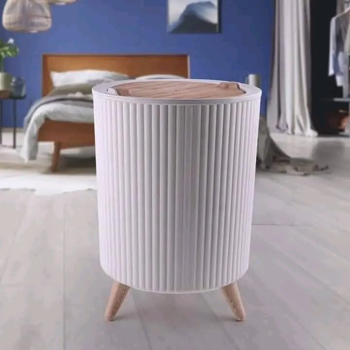 - Stylish Modern Design: Vertical Ribbed Design Decorative Trash Bin With Wooden Legs And Wooden Top Cover Adds A High-end Accent To Any Room Of The Home