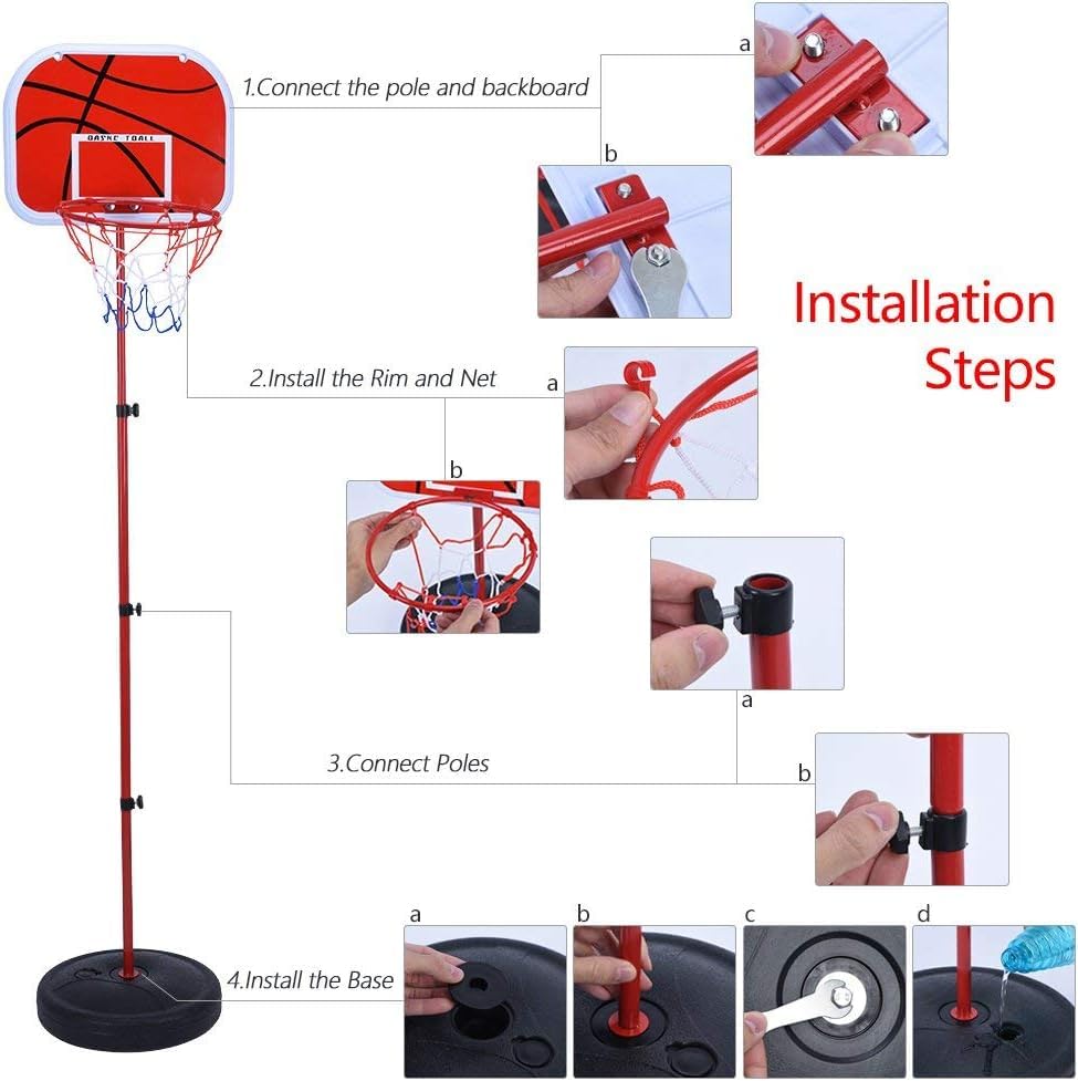 Generic - Basketball Hoop Stand with Round Ring, Free Height Adjustable Basketball Hoop Board Stand with Pump Ball and Mounting Accessories for Kids Indoor Outdoor Basketball Sports (120cm)
