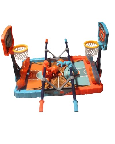 - COMPLETE GAME SET: Includes interactive desktop basketball court with 2 spring-loaded launchers, 2 basketball hoops with scoreboards, 6 mini basketballs (3 orange, 3 blue), and all components needed for immediate play