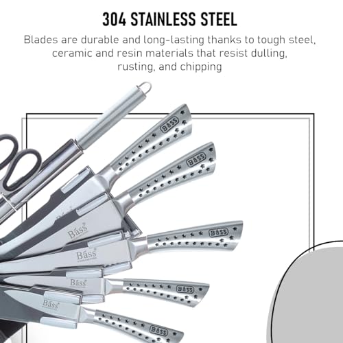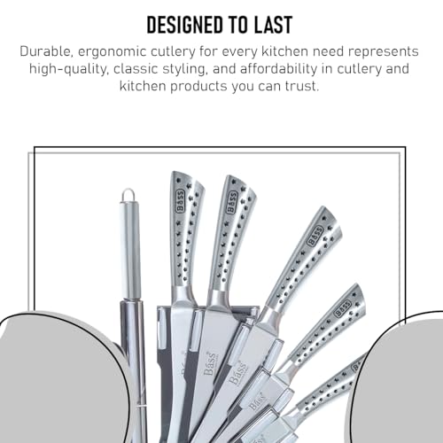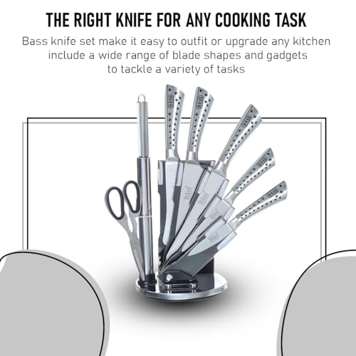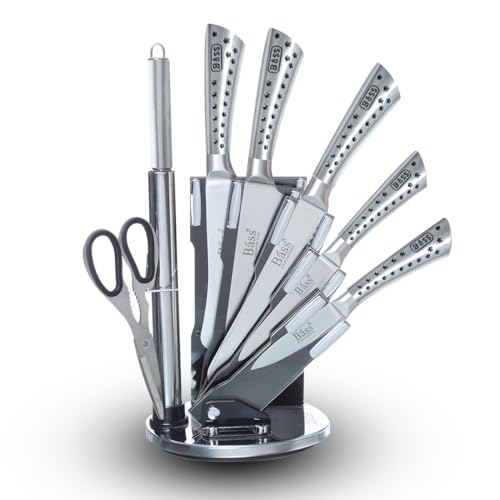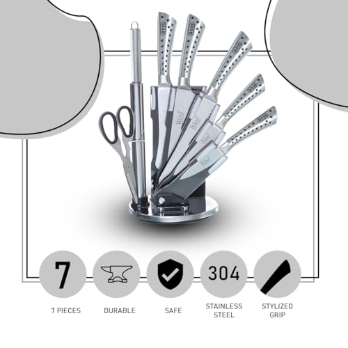 Generic - BASS 7 pcs Chef Knife Set, Stainless Steel Kitchen Knives Set, Super Sharp Cutlery Set with Stand, Scissors & Sharpener (Silver B)
