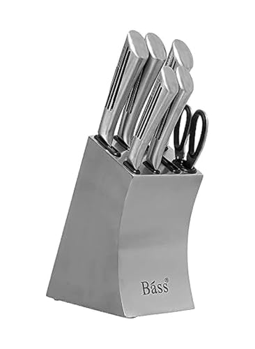 generic - Bass 7-Piece Stainless Steel Knife Set with Holder, Silver