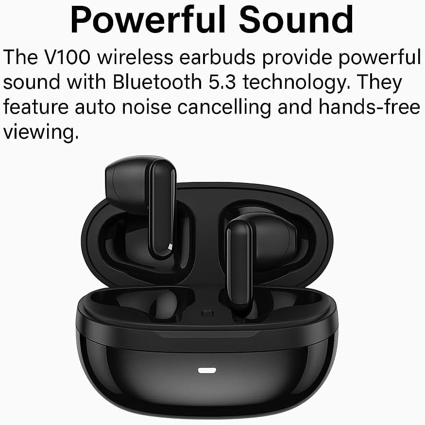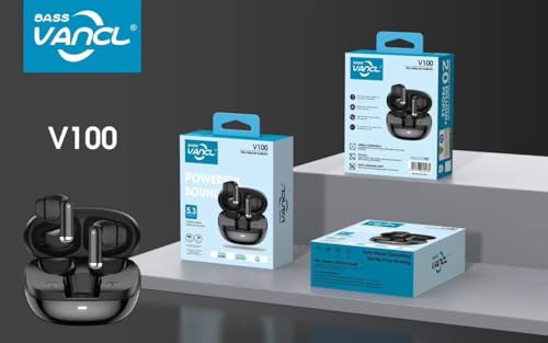 BASS VANCL - V100 Wireless Earbuds, Black, Active Noise Cancelling, Bluetooth 5.3, 50g Lightweight Design, Travel Headphones with Touch Controls