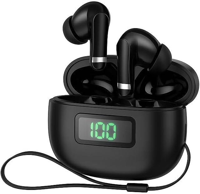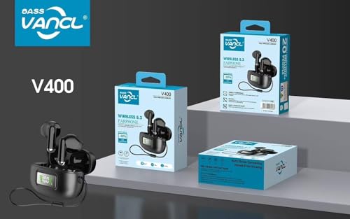 BASS VANCL - V400 Wireless Earbuds, Black, Active Noise Cancelling, Bluetooth 5.3, LED Display, Fast Charging, Bass Enhancement Technology, Touch Controls