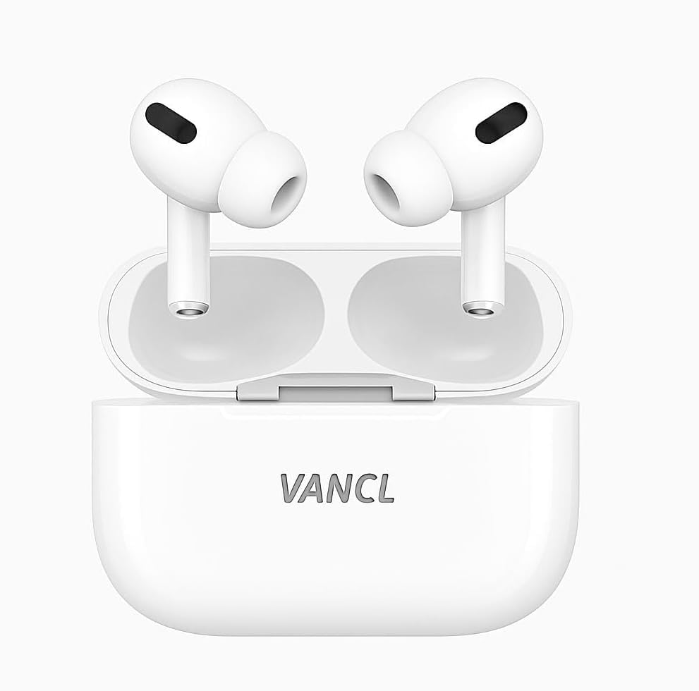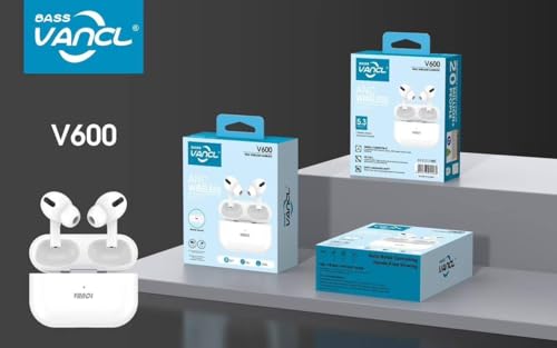 BASS VANCL - V600 Wireless Earbuds, White, Noise Cancelling Technology, Bluetooth Compatible, Premium Sound Quality