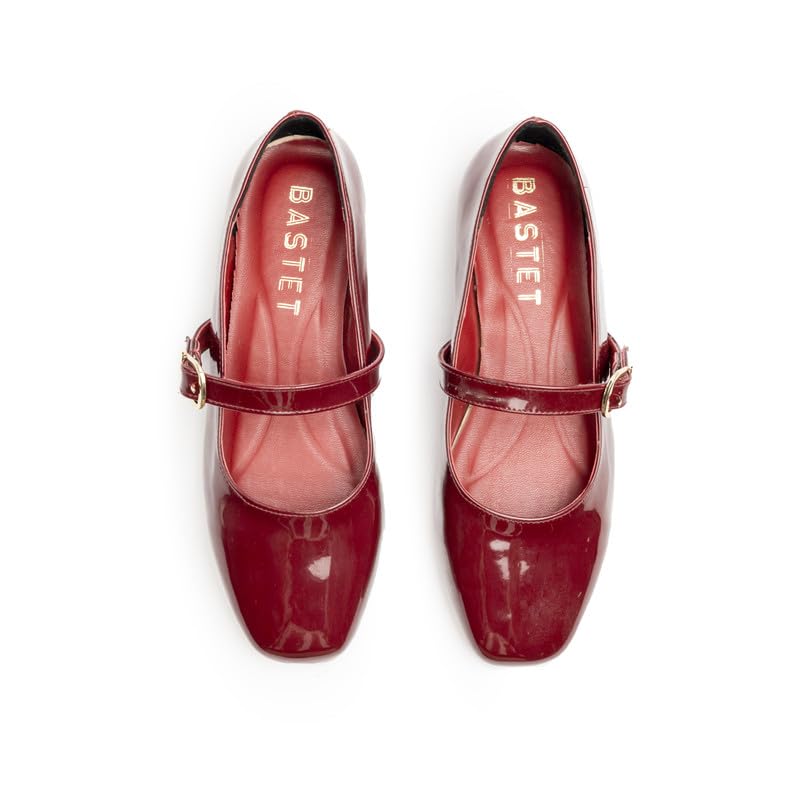 BASTET - حذاء ماري جين مسطح للنساء من باستيت، مصنوع من البولي يوريثين اللامع الحاصل على براءة اختراع مع نعل داخلي مريح