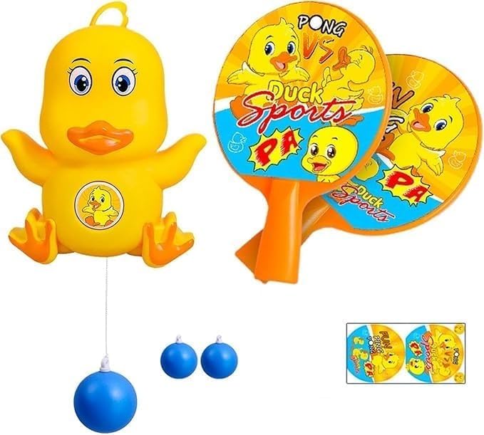 Generic - لعبة المضرب والكره والبطه للأطفال مع بطة صفراء، تتضمن مضربين وكرتين، لعبة حائط تفاعلية