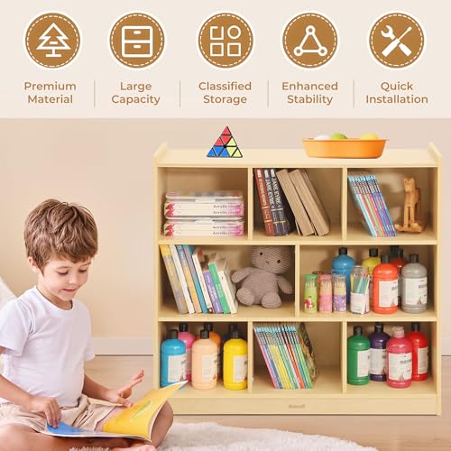 - Multipurpose Cabinet in Various Scenarios: Featuring a blend of open display and storage, this toy storage shelf can fit perfectly with almost all other furnishing items. With classical and practical design, this toy storage organizer matches well with daycare, study room, nursery, kindergarten, reading room, home office, classroom, playroom, bedroom, living room, etc. In addition, this multifunctional shelf can be used as a storage unit, bookcase or display cabinet to elevate your space.