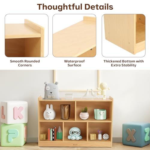 Bateso - منظم تخزين ألعاب للأطفال من باتيسو، خزانة ألعاب خشبية مكونة من 5 أقسام، رف كتب مونتيسوري للكتب والألعاب، من 2 طبقة ورف ألعاب لغرفة الأطفال وغرفة اللعب والفصول الدراسية والحضانة