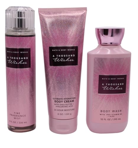 Bath & Body Works - مجموعة جل استحمام للعناية بالجسم سعة 284 مل من ايه ايس اند ويشز، رذاذ عطري 227 مل وكريم للجسم 227 مل